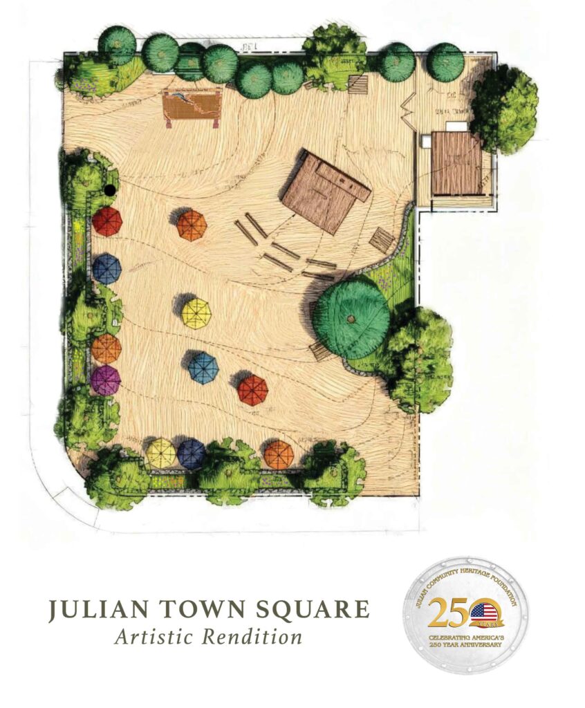 The Julian Town Square project is a grass-roots community effort that started in 2017. Many volunteers, business & organizations came together to make this project a reality. The town square project is dedicated to the community of Julian & will serve as a community park & outdoor entertainment space. It is our hope that this place will be the epicenter of art, theater & community gatherings for many generations to come.